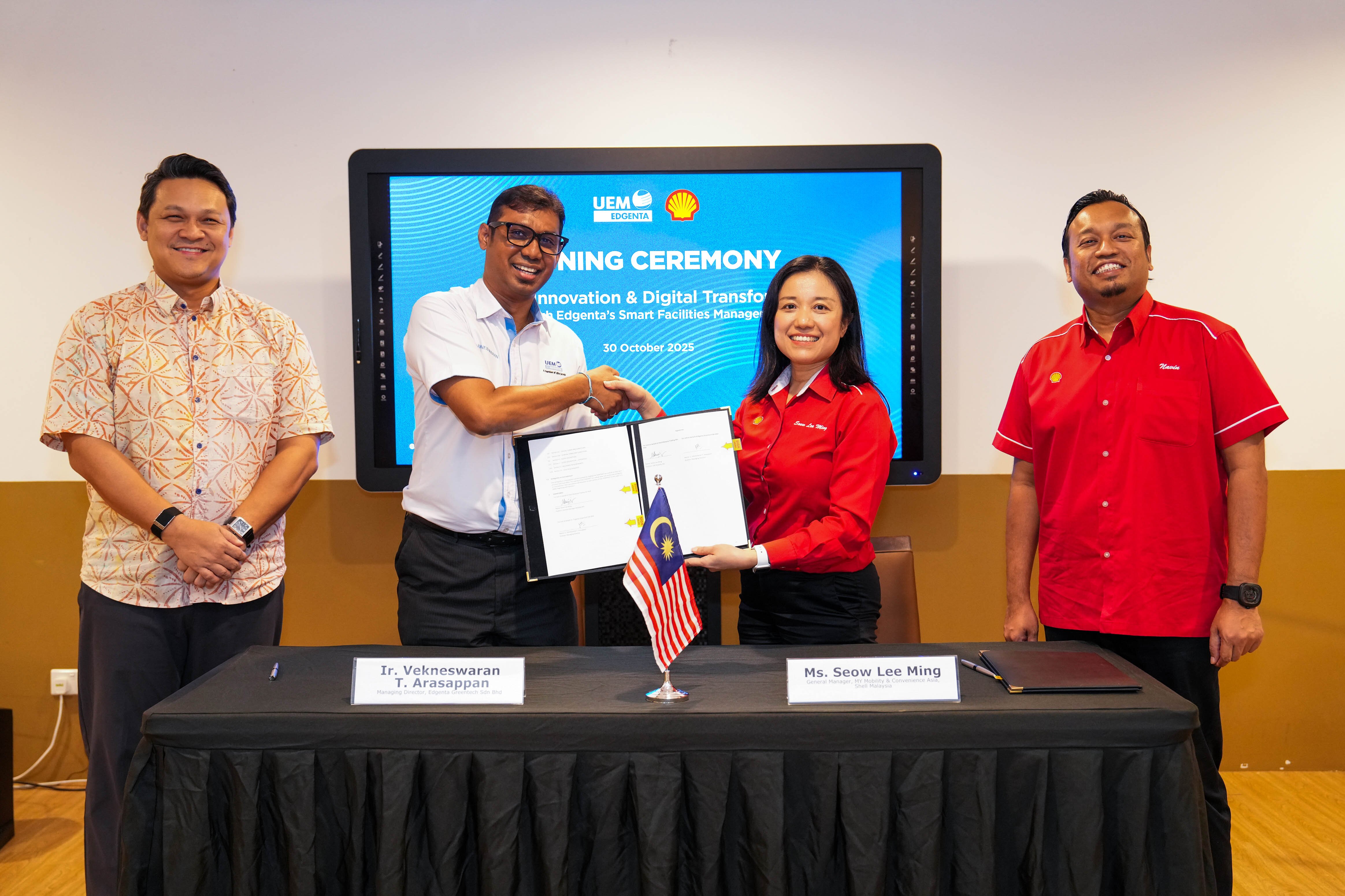 Ir. Vekneswaran T. Arasappan, Head of Property & Facility Solutions, UEM Edgenta and Managing Director of Edgenta GreenTech Sdn Bhd, added, “By aligning our operational excellence framework with Asseto - our advanced ‘Company Mobility’ Asset Management system, and our uncompromising safety culture, we will not only optimize the lifecycle and performance of Shell’s assets but also ensure a consistently safe, welcoming environment for every customer. This contract underscores our commitment to integrated, technology-driven asset management and our role in reinforcing Shell’s position as a preferred petrol station, prioritising its customers first.”
